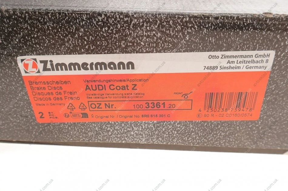 Гальмівний дискAUDI Q5 (8R) 2.0 TFSI-3.0DTI quattro ZIMMERMANN 100336120