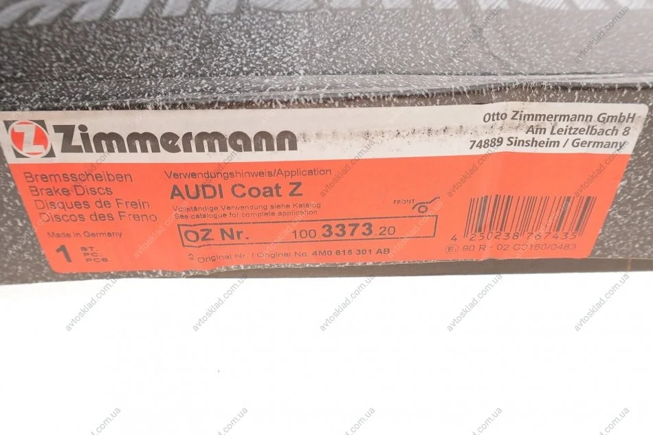 Диск гальмівний ZIMMERMANN 100337320