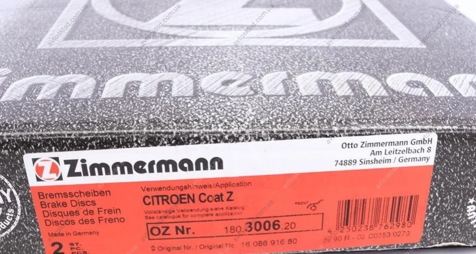 Диск гальмівний ZIMMERMANN 180.3006.20