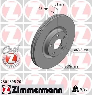 Диск гальмівний ZIMMERMANN 250.1398.20