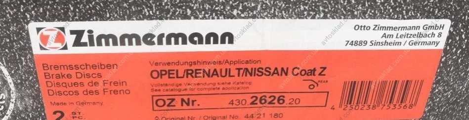 Диск гальмівний ZIMMERMANN 430.2626.20