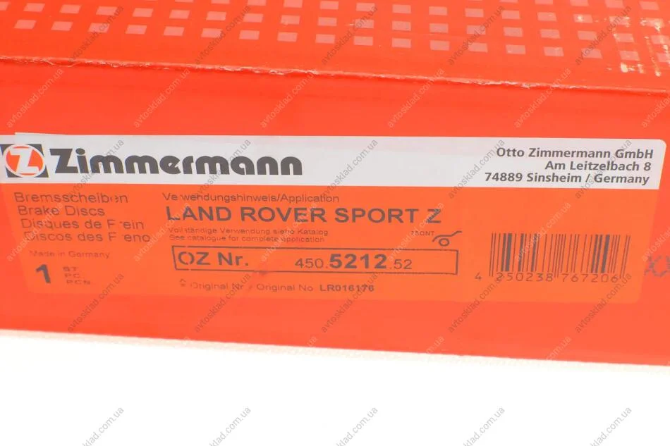 Диск гальмівний Sport ZIMMERMANN 450521252