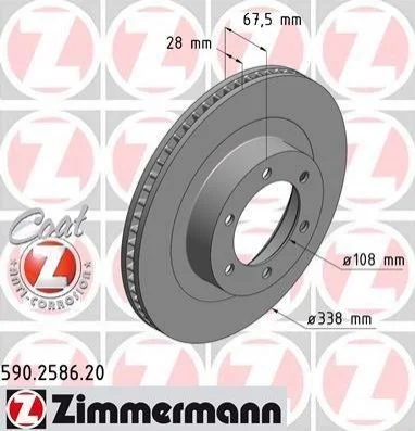 Гальмівний диск перед вентил Land Cruiser 120 Prad ZIMMERMANN 590258620