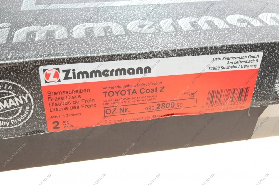 Диск гальмівний ZIMMERMANN 590.2800.20