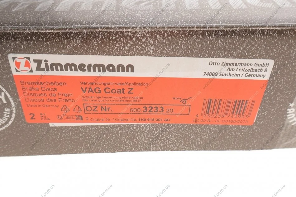 Гальмівні диски ZIMMERMANN 600323320